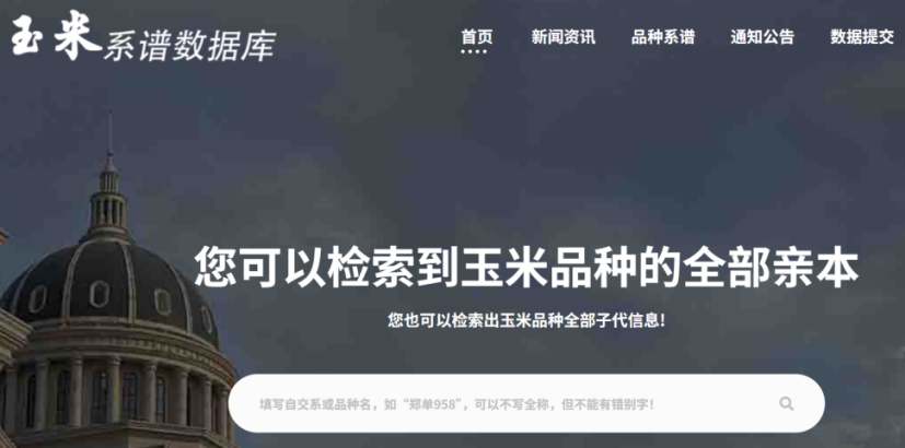 ☆?中國玉米品種系譜數(shù)據(jù)庫:收錄自交系及品種信息10000余條,涉及自交系1218個(gè),雜交種7823個(gè)。該數(shù)據(jù)庫實(shí)現(xiàn)了品種信息檢索、系譜追溯、子代查詢、定制化查詢、用戶上傳及糾錯(cuò)系譜信息等功能,便于中國玉米育種家及科研工作者快捷查詢玉米自交系及品種的信息及系譜關(guān)系。