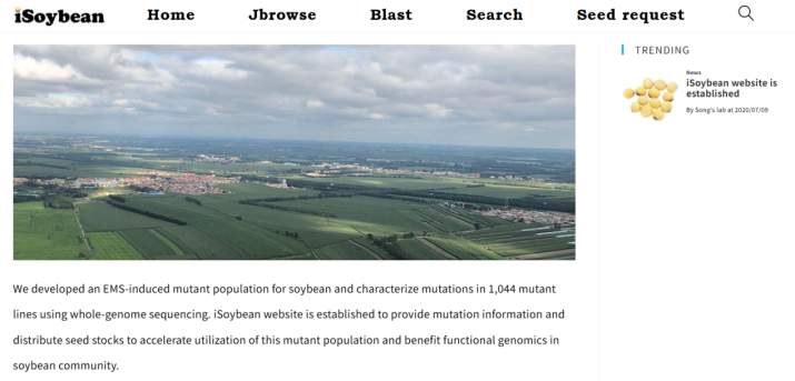 ☆?iSoybean:收集了EMS誘變的大豆突變種群,并利用全基因組測序技術(shù)對1,044個(gè)突變系中的變異進(jìn)行了詳細(xì)表征。該網(wǎng)站致力于提供關(guān)于大豆突變體的詳盡信息,并通過種子庫分發(fā)這些突變體,促進(jìn)其在功能基因組學(xué)研究領(lǐng)域的快速應(yīng)用。