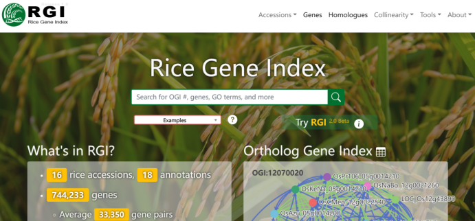 ☆?水稻基因索引數(shù)據(jù)庫RGI:在這個(gè)數(shù)據(jù)庫里,亞洲稻的每一個(gè)基因都能輕松找到同源或相近的基因,以及追蹤其演變歷史。