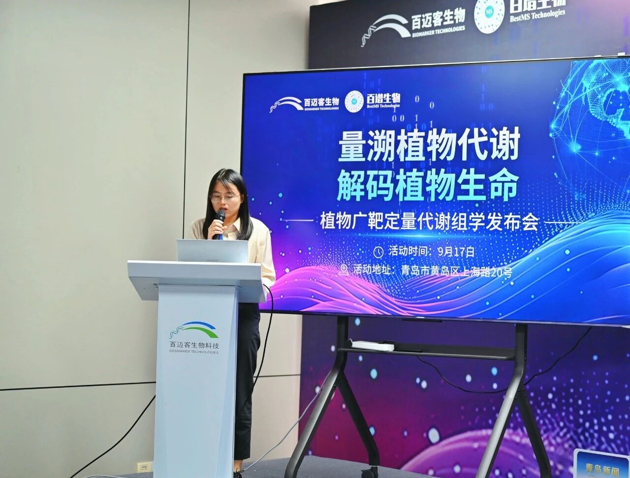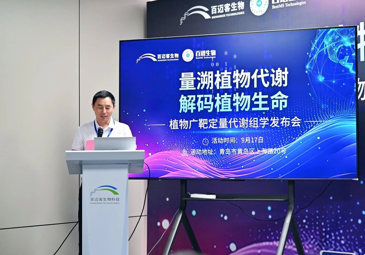 2025年9月17日,由百邁客生物與百譜生物聯(lián)合主辦的 “植物廣靶定量代謝組學(xué)發(fā)布會” 在青島隆重舉行。中國科學(xué)院海洋研究所段德麟研究員、北京大學(xué)現(xiàn)代農(nóng)業(yè)研究院王旭教授、中國科學(xué)院海洋研究所張立濤副研究員、SCIEX中國市場開發(fā)經(jīng)理方晶晶受邀出席,會議同步開啟線上直播,吸引超3000人次參與,引發(fā)行業(yè)廣泛關(guān)注。本次發(fā)布會推出的植物廣靶定量代謝組學(xué)產(chǎn)品,成功突破非模式植物研究瓶頸,為植物基礎(chǔ)研究與農(nóng)業(yè)產(chǎn)業(yè)升級注入全新動能。