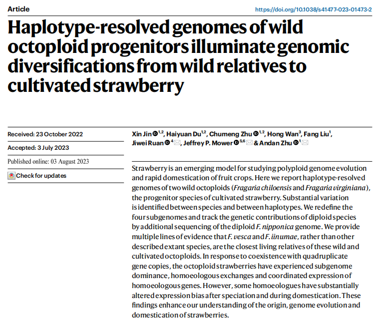 該研究報(bào)道了兩個八倍體野生草莓智利草莓 (F. chiloensis)和弗州草莓 (F. virginiana)染色體水平的高質(zhì)量分型基因組組裝。探討了八倍體草莓在馴化過程中的同源偏向性表達(dá)分化,并鑒定到了一些重要的轉(zhuǎn)錄因子在馴化過程中發(fā)生了表達(dá)轉(zhuǎn)變。此研究深度解析了草莓的起源、基因組進(jìn)化和馴化。(百邁客參與測序工作·)