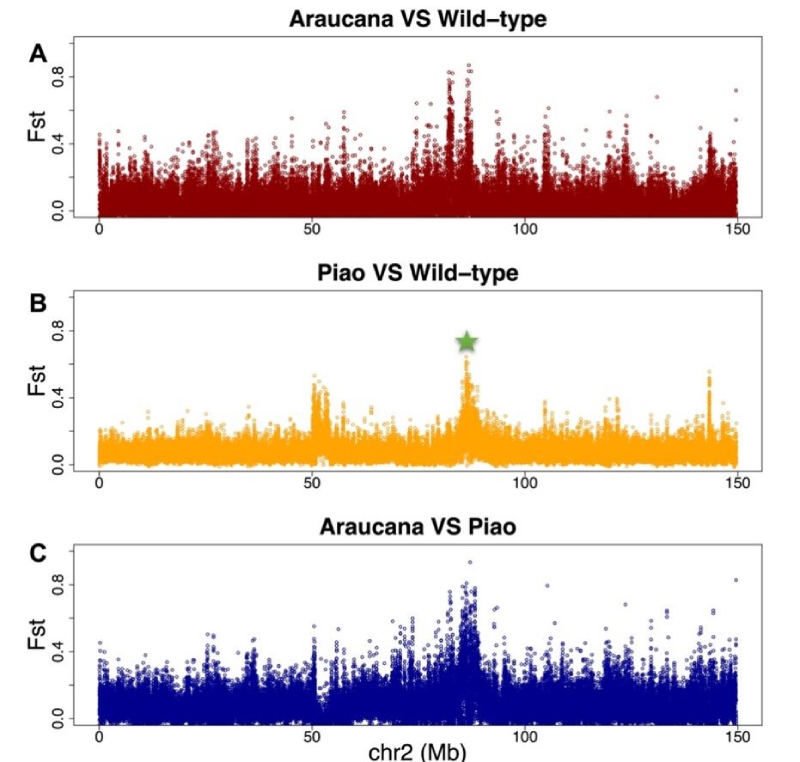 ]]>該研究以瓢雞和仙居雞為親本建立回交家系,以探索瓢雞無尾特征的遺傳機(jī)制和分子基礎(chǔ)。通過全基因組關(guān)聯(lián)和連鎖分析,研究人員將無尾性狀的候選區(qū)域精確定位到798.5 kb的區(qū)間內(nèi)(chr2:86.9-87.7 Mb)。