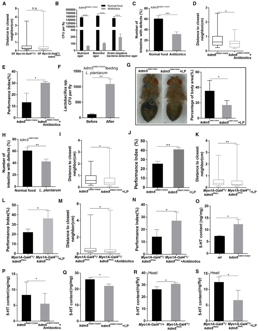3. 對果蠅腸道菌群的調(diào)控緩解了KDM5缺乏所誘導(dǎo)的表型