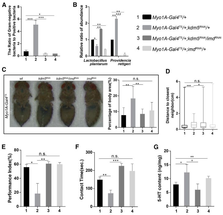 5. KDM5去甲基化酶的活性調(diào)節(jié)了IMD/Rel通路的活性和腸-菌-腦軸功能