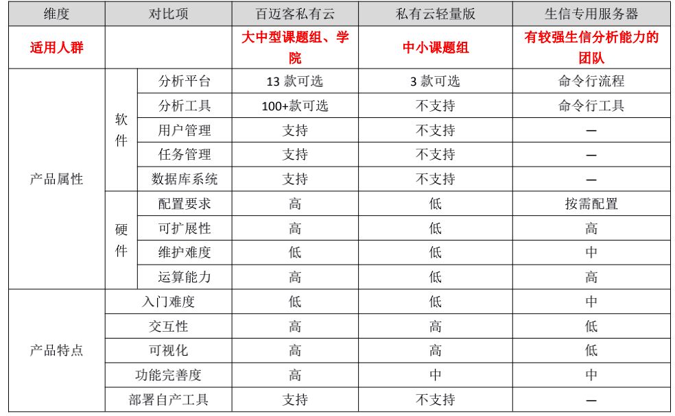 為更好的滿足更多科研用戶的生信分析需求,百邁客云根據(jù)客戶反饋快速完善產(chǎn)品體系,針對不同大小、不同生信背景的課題組,量身定做了不同類型的生信分析產(chǎn)品,助力科研工作者快速完成生信大數(shù)據(jù)的挖掘與轉(zhuǎn)化。