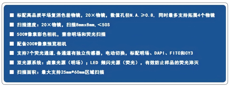50S內(nèi)可完成8mm*8mm 20X掃描,支持掃描25mm*60mm,原片明場及原片熒光成像
