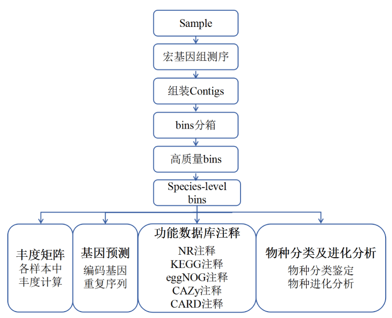 宏基因組測的是一個環(huán)境中的全部微生物的基因組信息,以獲得群落中全部的物種信息和功能信息,而Binning可以把宏基因組數(shù)據(jù)中來自同一菌株的序列聚到一起,得到一個菌株的基因組,對不同的菌株進(jìn)行分類鑒定。Binning分析使我們得以洞察這些無法在實驗室培養(yǎng)獲得的菌株的生態(tài)適應(yīng)機(jī)制、營養(yǎng)互作機(jī)制和新陳代謝功能等,可以研究在環(huán)境中起重要作用的微生物、進(jìn)化機(jī)制、及其與宿主的互作機(jī)制等。