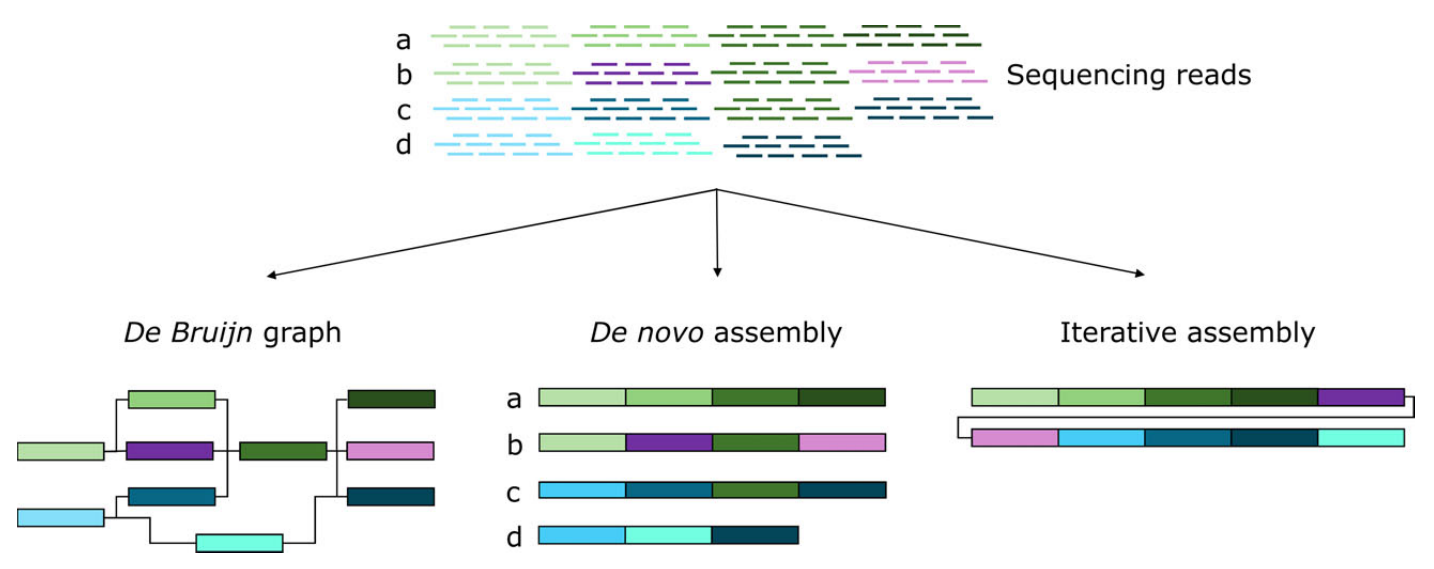 泛基因組主要有3種構(gòu)建方法:Map to pan,Iterative assembly和De novo assembly。從頭組裝(De novo assembly):是構(gòu)建泛基因組或者參考基因組最經(jīng)典的方法,分別對多個個體分別進(jìn)行從頭組裝并且注釋,然后將所得的每個個體的組裝好的序列與參考序列基因組進(jìn)行互相比對,找出比對不上的區(qū)域或者基因,這些個體獨特的基因就是非核心基因。
