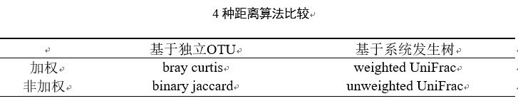 Beta 多樣性分析主要采用 binary jaccard bray curtis、 unweighted Unifrac(限細(xì)菌)、weighted Unifrac (限細(xì)菌)4種算法計(jì)算樣品間的距離,那么這四種算法都有什么差別呢?