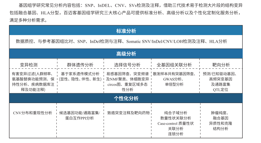 遺傳病致病機(jī)制、疾病發(fā)生發(fā)展、腫瘤分子分型、疾病風(fēng)險篩查。